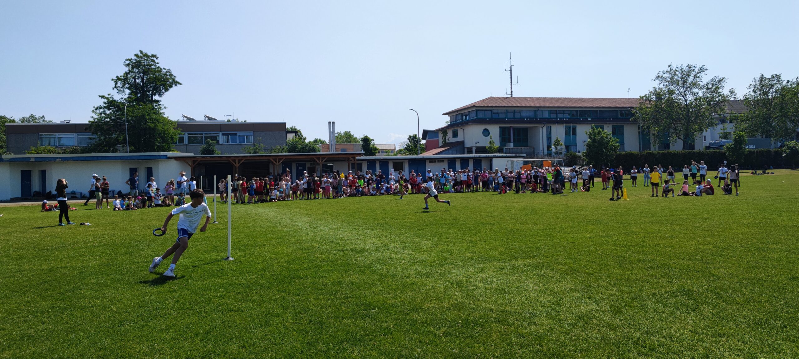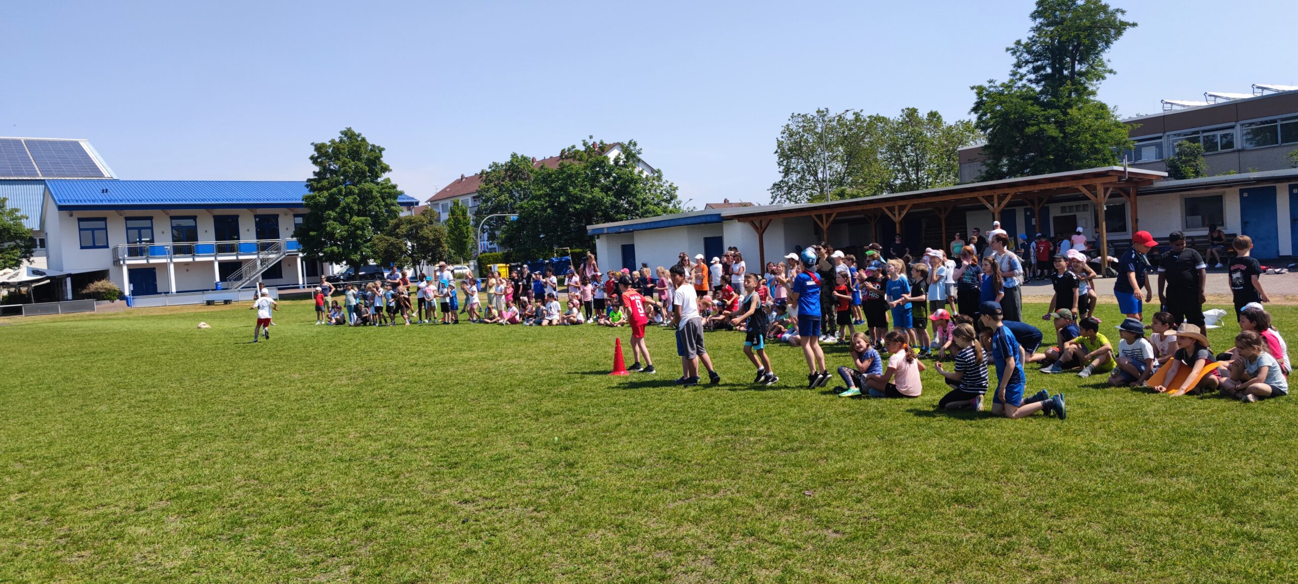 Am Dienstag, 06.06.2023, fanden die Bundesjugendspiele auf dem Sportplatz der TGS statt. Die Bundesjugendspiele begannen mit einem gemeinsamen Aufwärmtraining auf dem Rasen mit einem selbst ausgedachten Programm der Schülerinnen und Schüler der Klasse 4b. Anschließend machten sich alle Klassen, gemeinsam mit ihren Lehrkräften, auf den Weg zu den vier Stationen: Ausdauerlauf, Sprint, Weitwurf und Weitsprung. Zwischendurch wurden Spiele gespielt oder am Obststand, organisiert durch den Ganztag, neue Energie getankt. Zum Schluss traten die Klassen eines Jahrgangs beim Staffellauf gegeneinander an. Es wurde gejubelt, angefeuert und die Stimmung war nicht zu überhören. Alle Klassen erhielten am Schluss bei einer kleinen Siegerehrung eine Staffellauf-Urkunde für das Klassenzimmer.